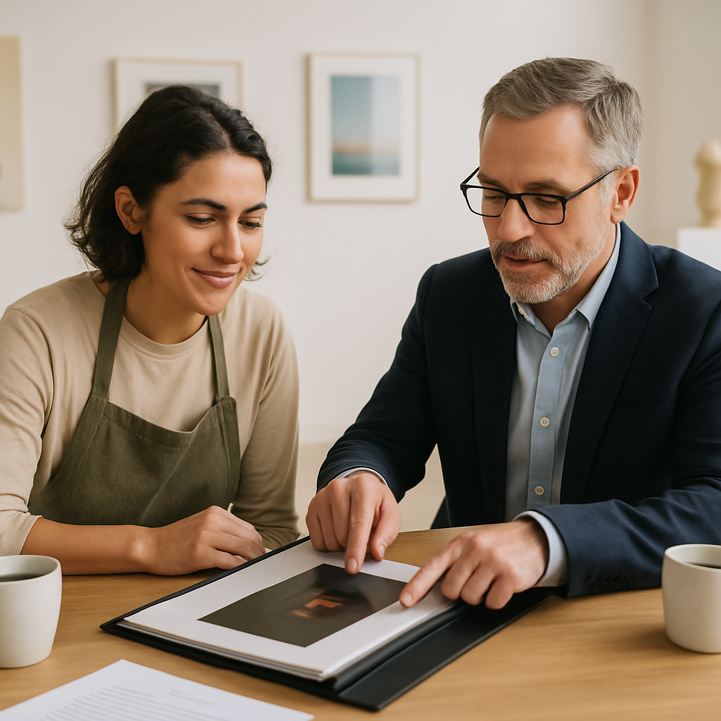 Eine bewährte Methode ist das „Three-Layer-Portfolio“: 1) Kernwerke, die Deine Praxis definieren; 2) ergänzende Projekte, die Tiefe zeigen; 3) kontextuelle Materialien (Skizzen, Prozessfotos, Texte). So haben Kurator*innen schnell einen Einstieg — und können bei Interesse tiefer einsteigen.
