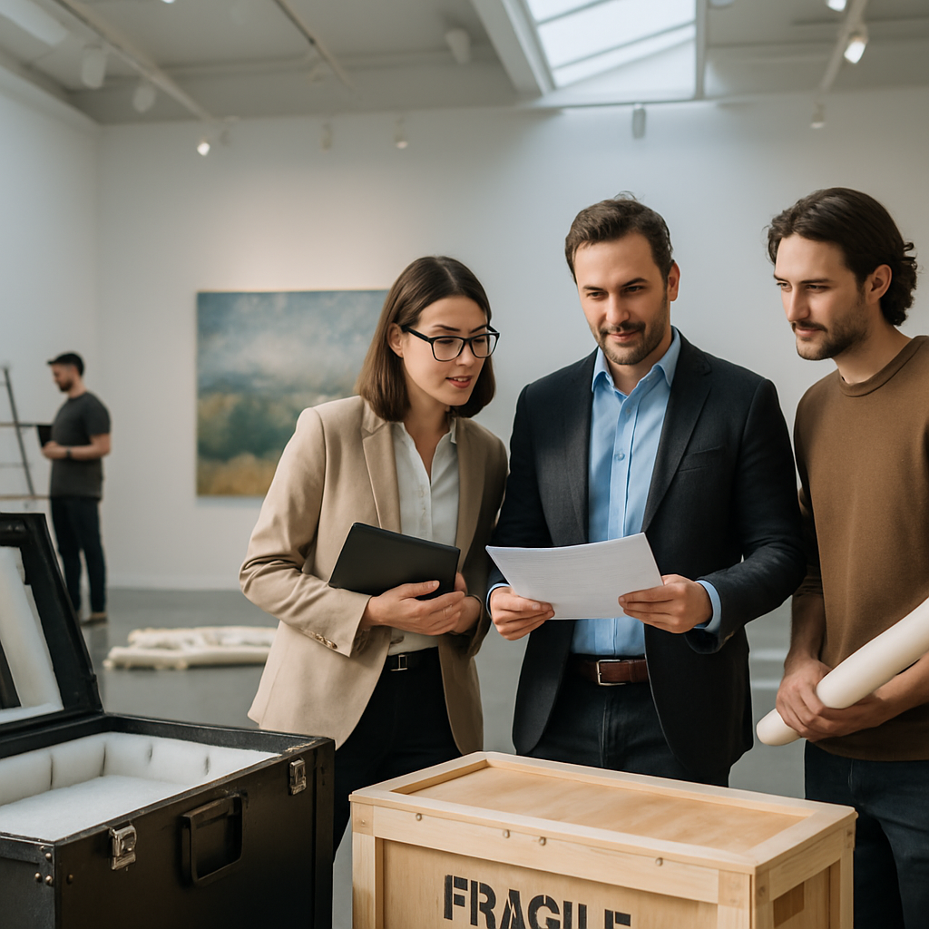Transport, Verpackung, Installation — all das muss sitzen. Wir koordinieren Transportunternehmen, überwachen die Klimabedingungen und erstellen Installationspläne in Absprache mit Deiner Technik. So vermeidest Du Überraschungen beim Aufbau und kannst die Eröffnung genießen.